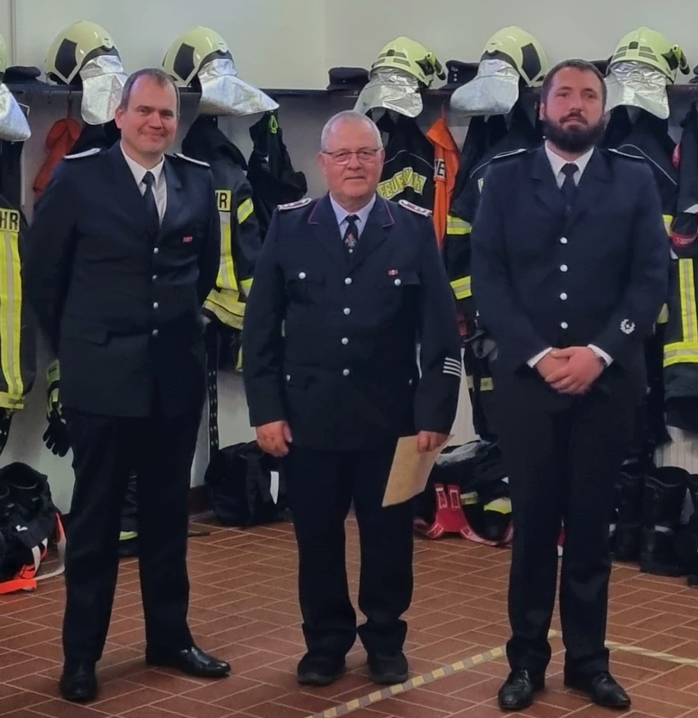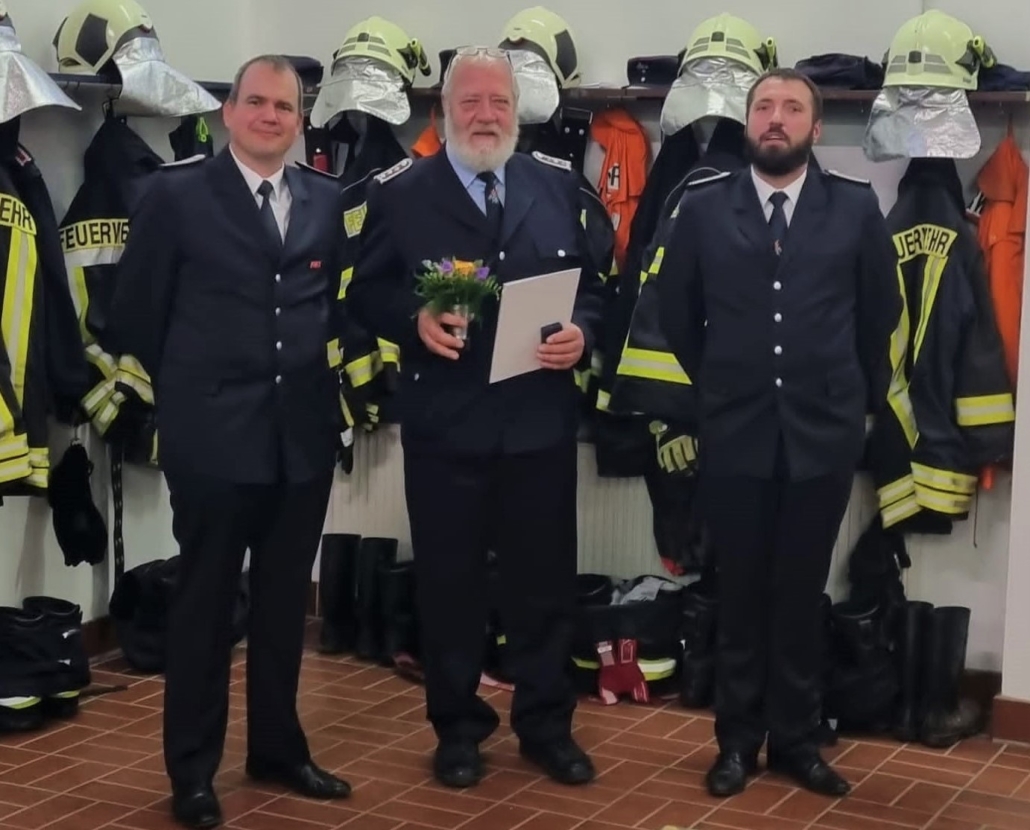 Dieter Allwardt, ehemaliger stellvertretender Gemeindewehrführer, wurde mit dem Brandschutz-Ehrenzeichen in Gold für seine 40-jährige Mitgliedschaft in der Freiwilligen Feuerwehr ausgezeichnet. Als herausragend wurde die Einsatzbereitschaft von Kamerad Allwardt betont. Aufgrund seiner beruflichen Tätigkeit in der Gemeinde war er jahrelang einer derjenigen, die auch tagsüber zu Einsätzen ausrücken konnten. Dieser Umstand war in 40 Dienstjahren für viele Hilfesuchende wahrlich Gold wert.