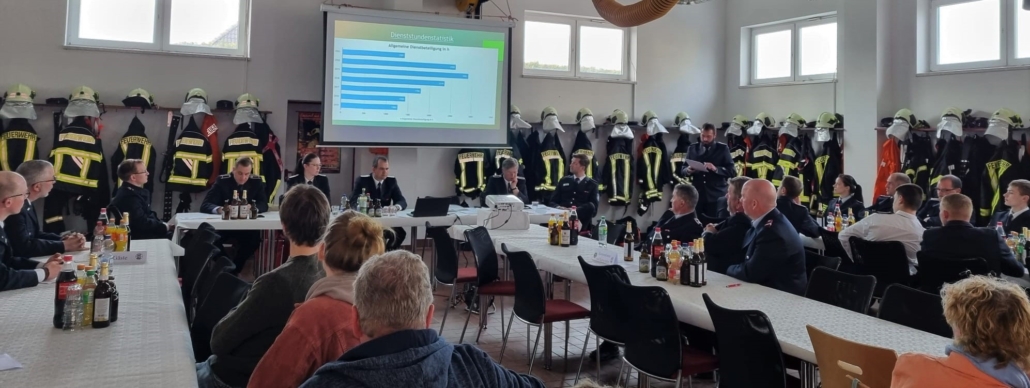 Bereits vor dem offiziellen Beginn stellten die Anwesenden eine Neuerung in Bezug auf den Veranstaltungsort fest. Aufgrund der gestiegenen Bereitschaft sich ehrenamtlich in unserer Feuerwehr zu engagieren, fand die Versammlung erstmalig in der Fahrzeughalle des Feuerwehrgerätehauses statt. Daher war es auch die personelle Situation, die zuerst in den Blick genommen wurde. Mit 32 Mitgliedern im Einsatzdienst stehen in